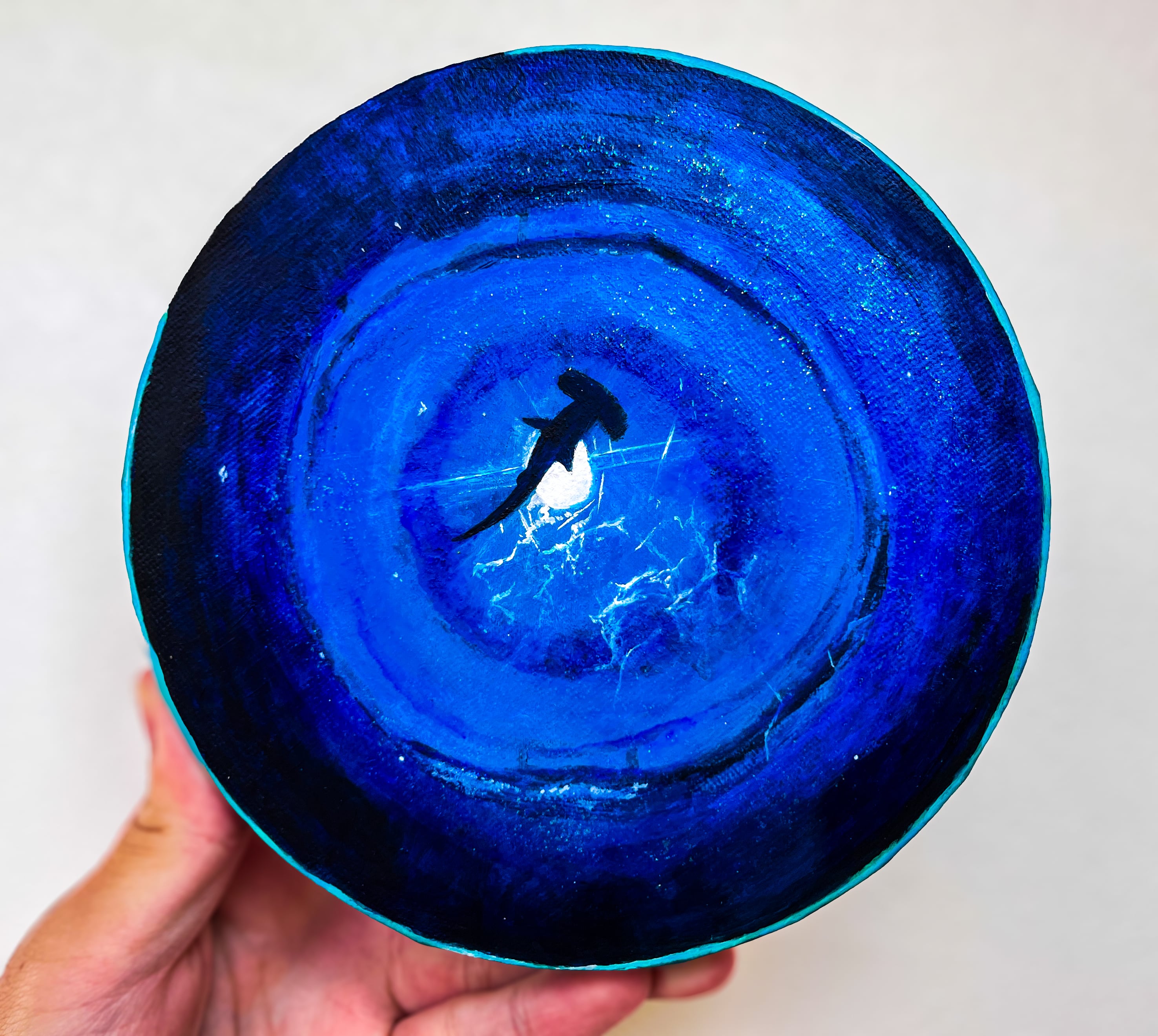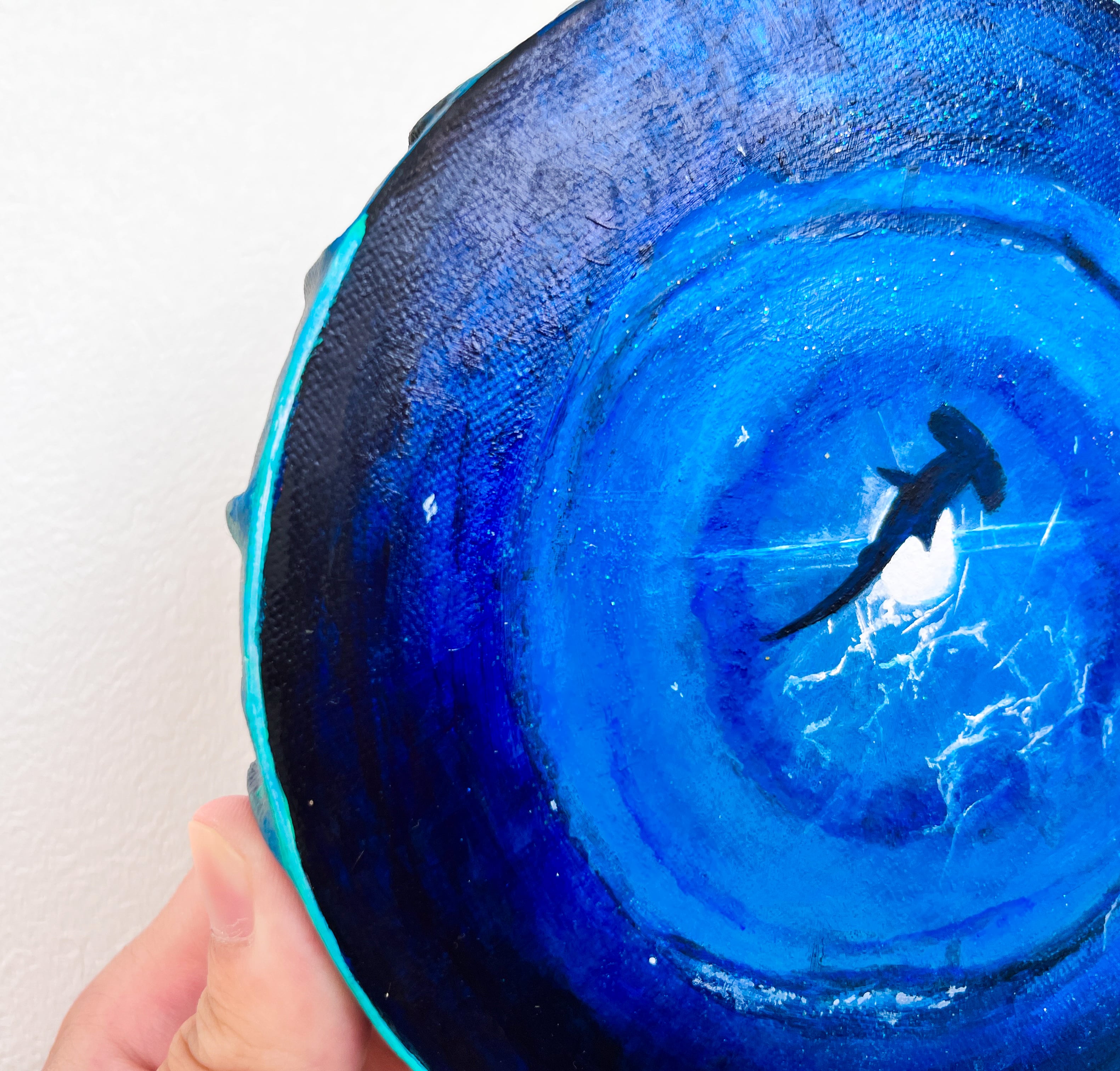 またラメの絵の具を使用しているため様々な角度から作品をみて、それぞれ違った雰囲気を楽しんでいただけたらと思います