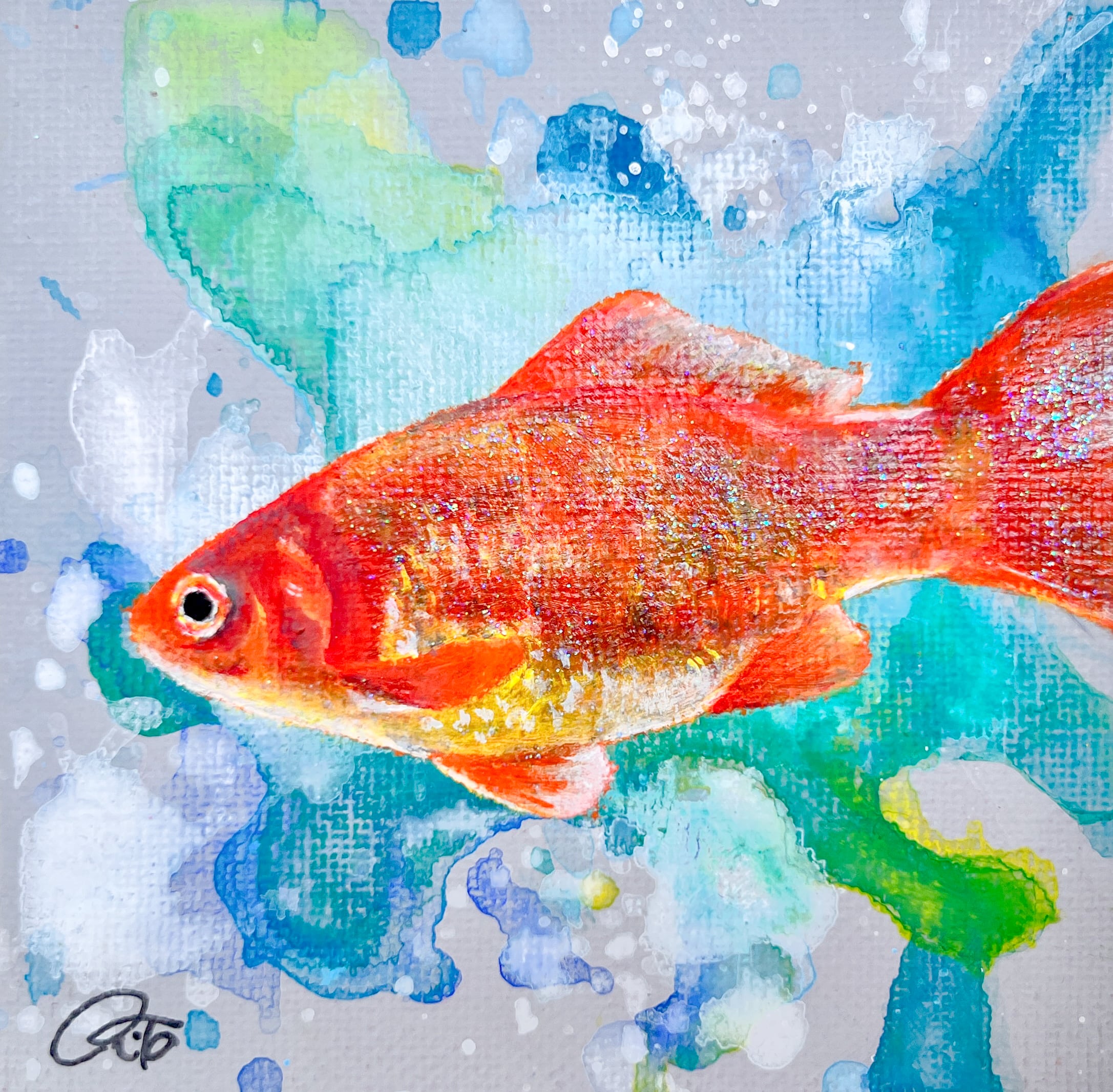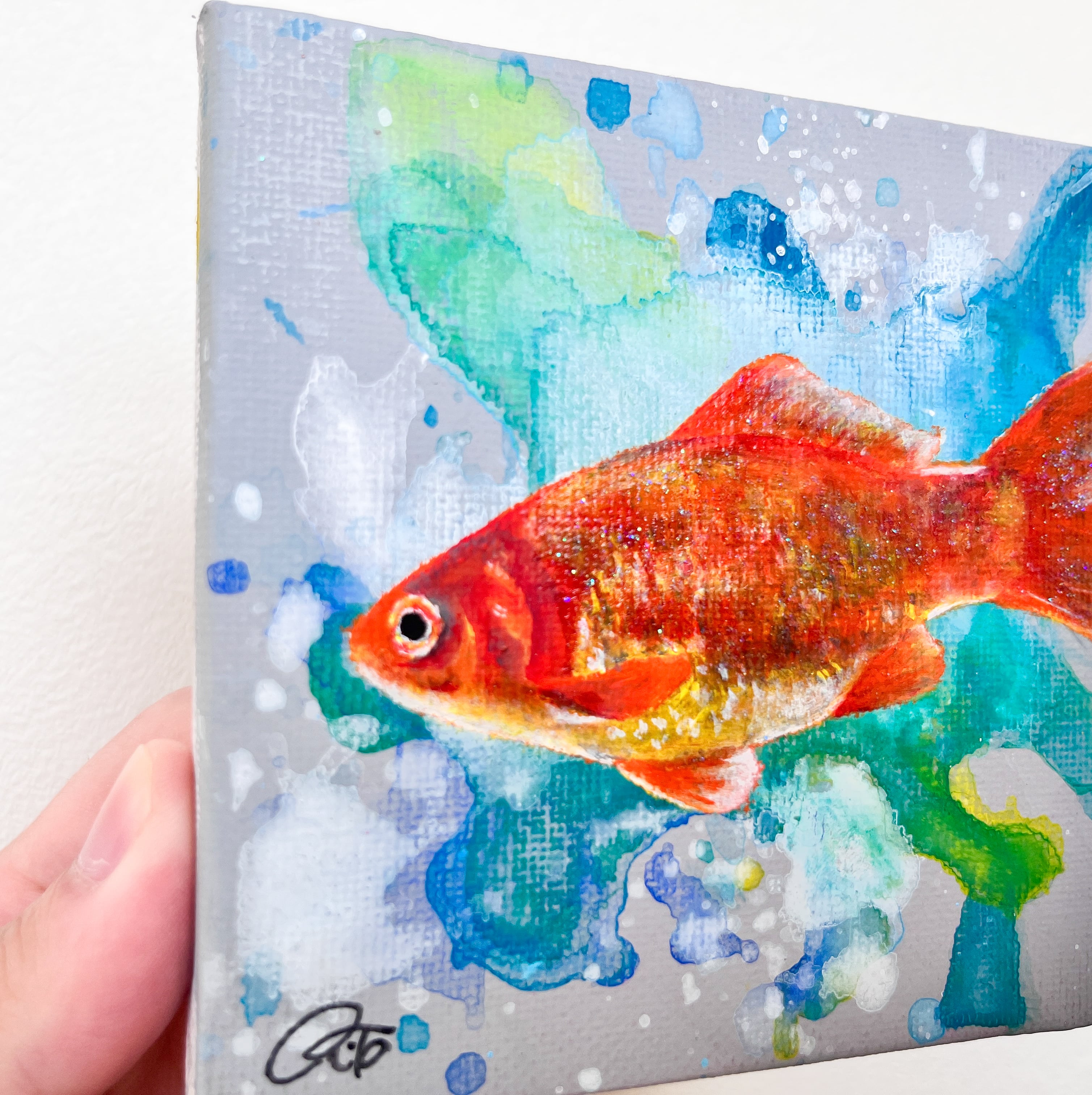ミニキャンバスに描いた金魚になります