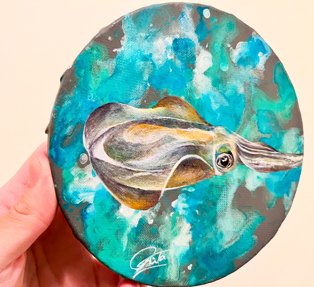 またラメの絵の具を使用しているため様々な角度から作品をみて、それぞれ違った雰囲気を楽しんでいただけたらと思います