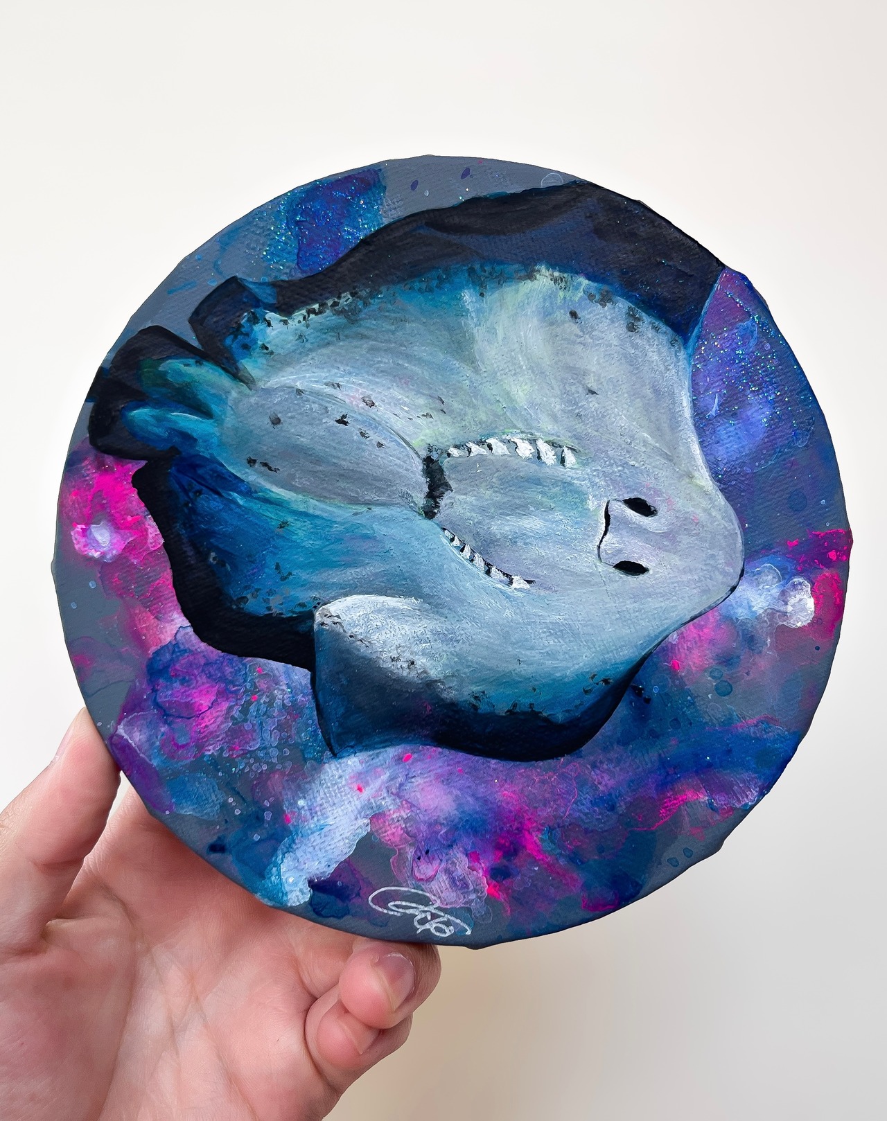 またラメの絵の具を使用しているため様々な角度から作品をみて、それぞれ違った雰囲気を楽しんでいただけたらと思います
