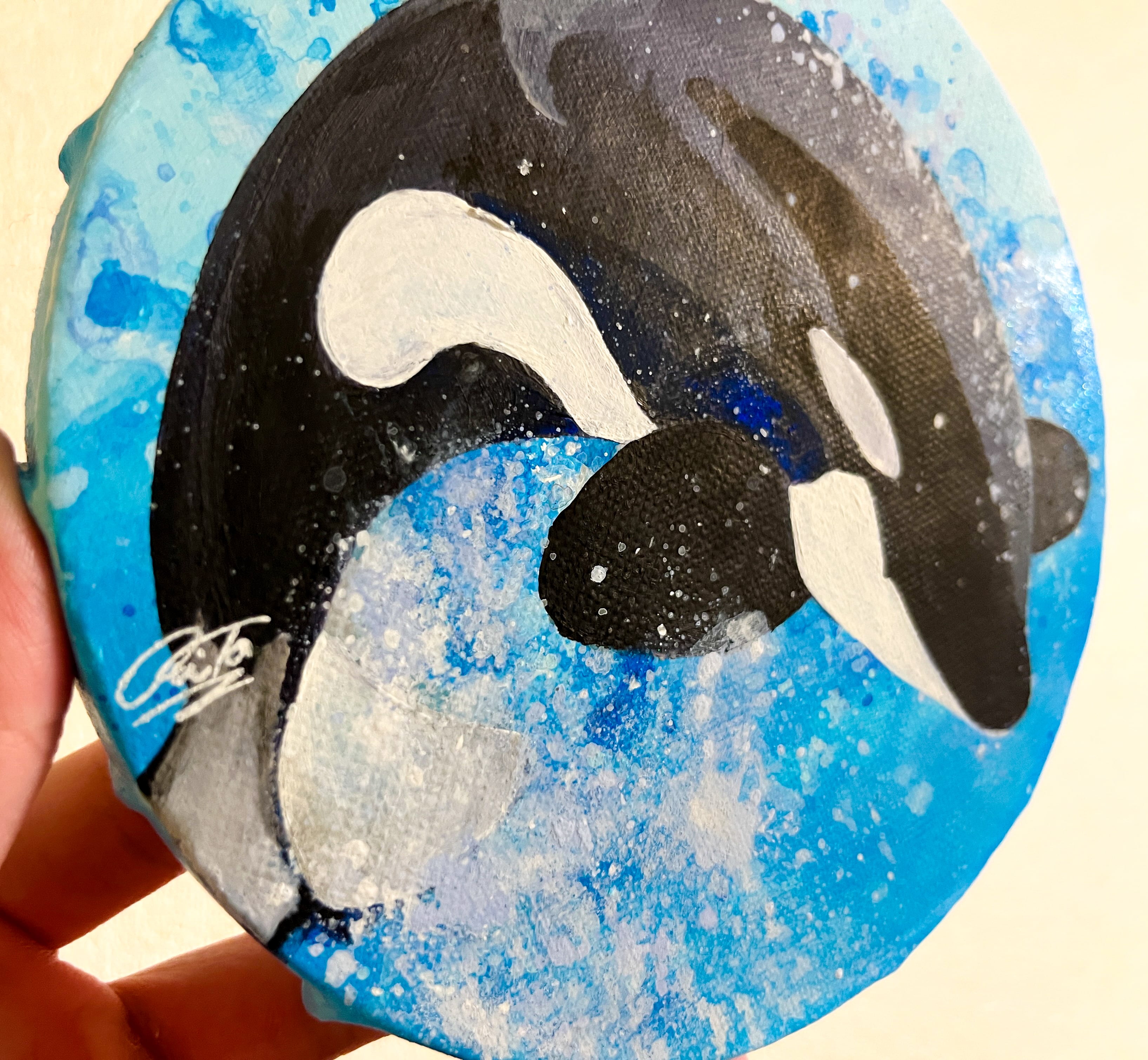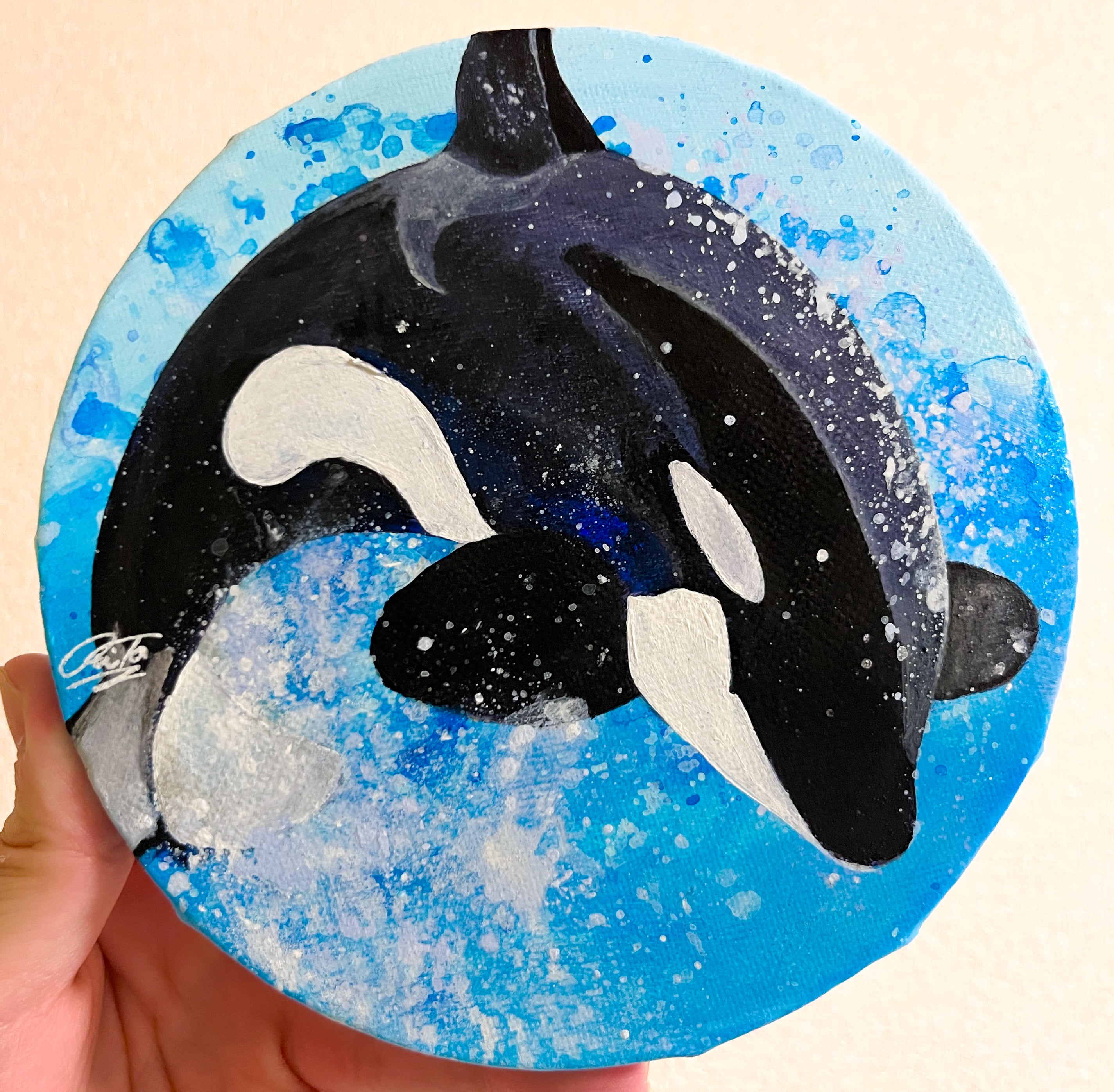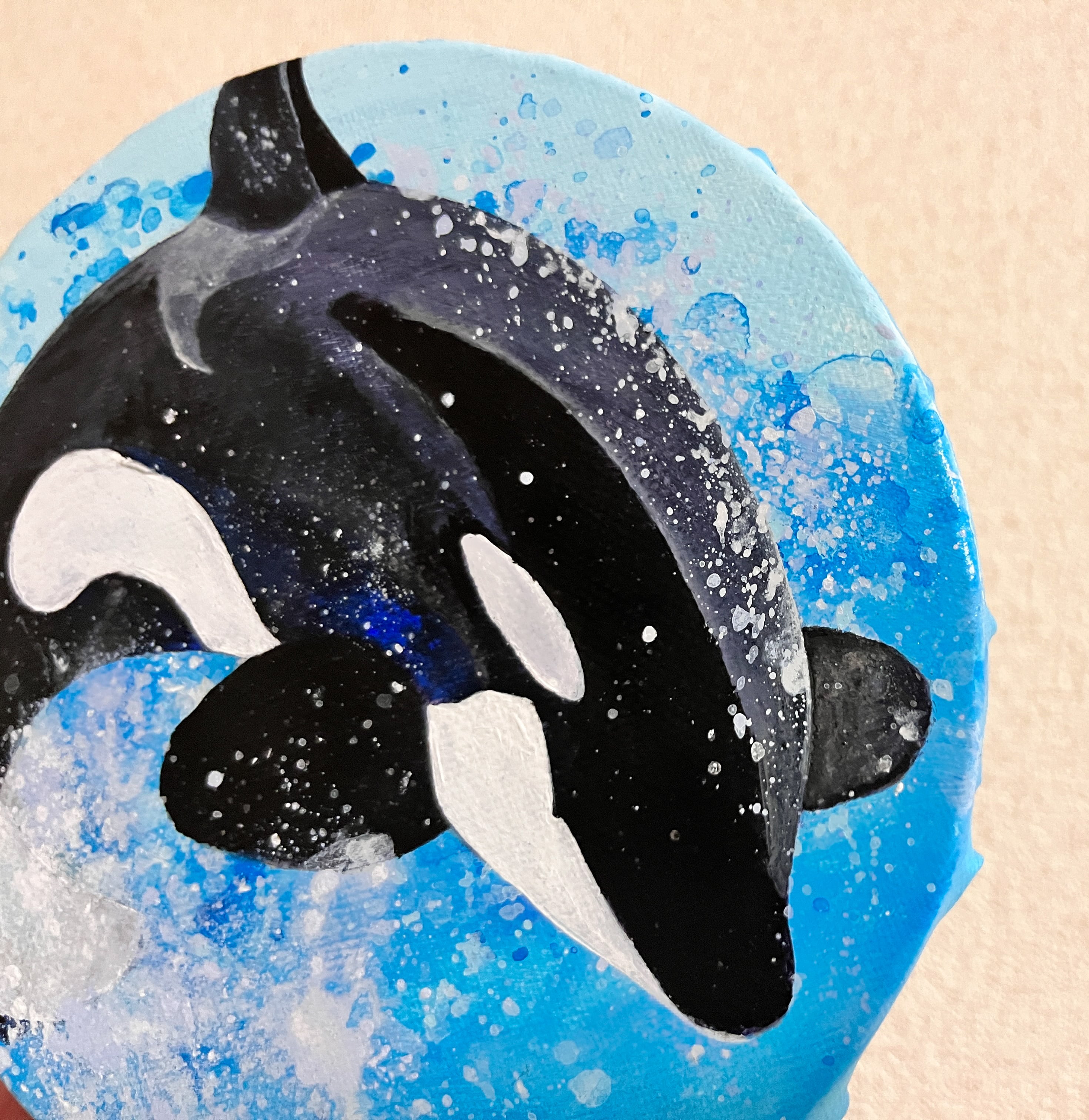 シャチの大迫力のジャンプをマルキャンバスに描きこみました