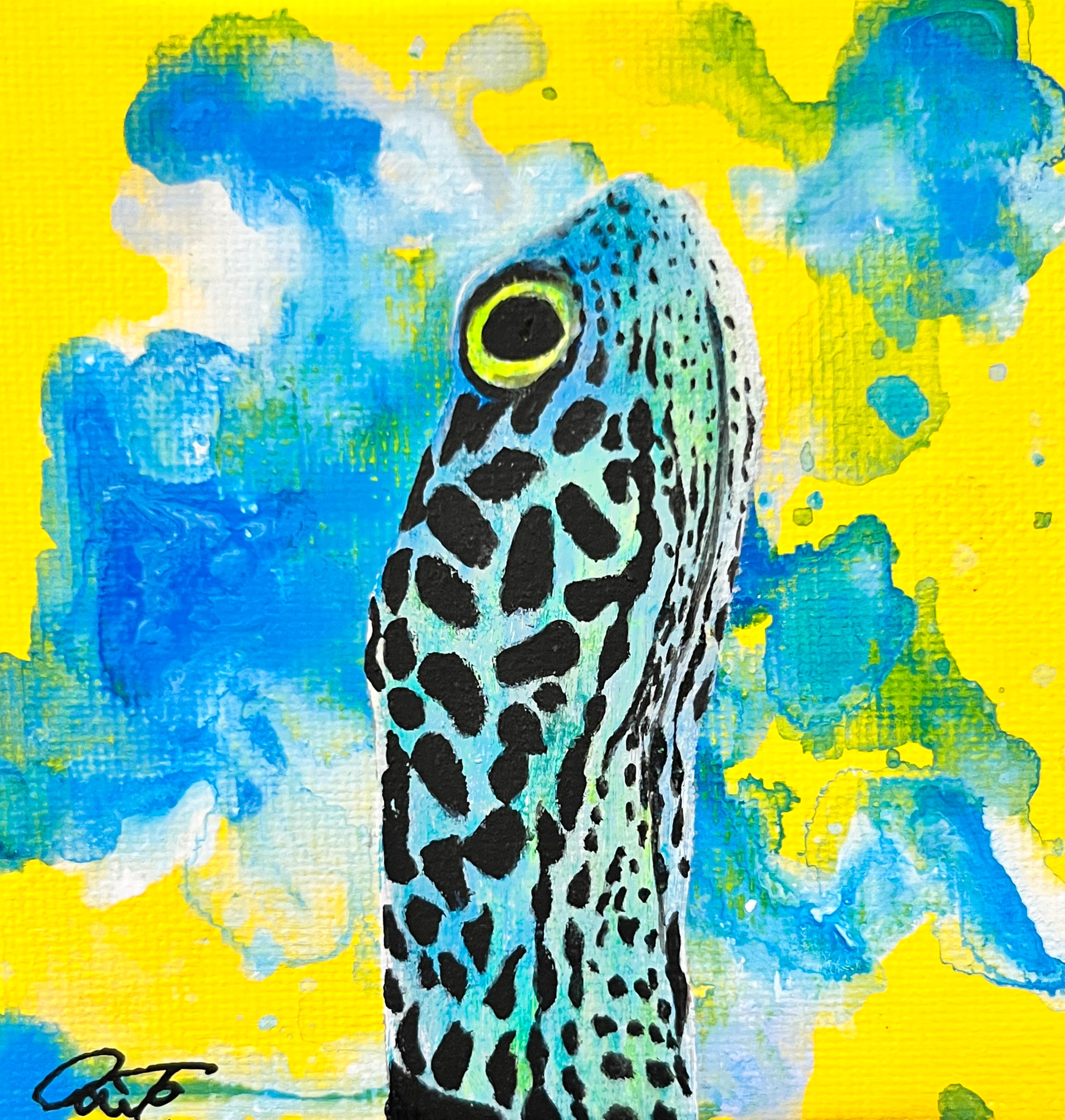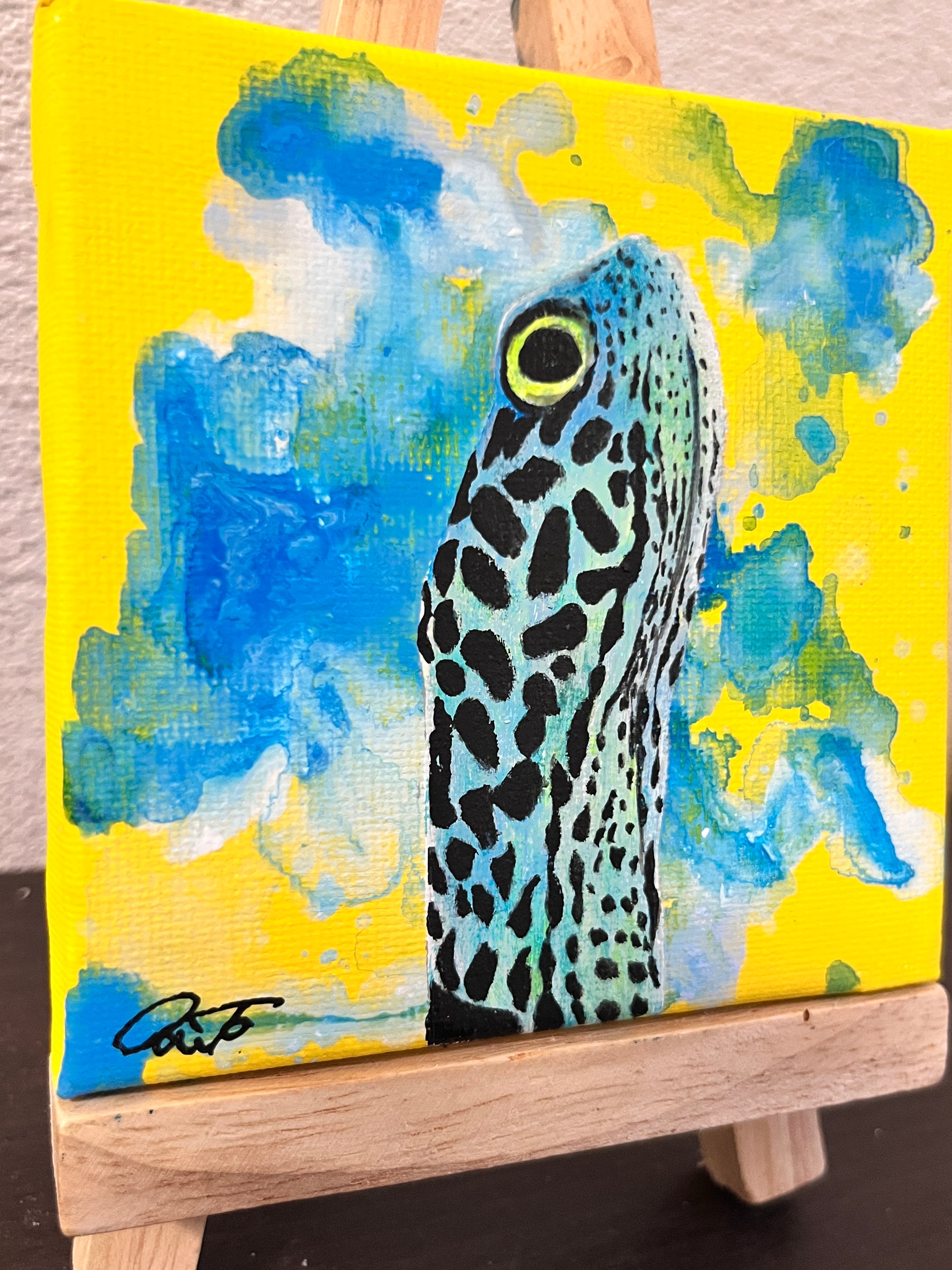 小さい作品でありながら、複数回の重ね塗りにより作品に深みを出し、鮮やかで面白い作品になっています