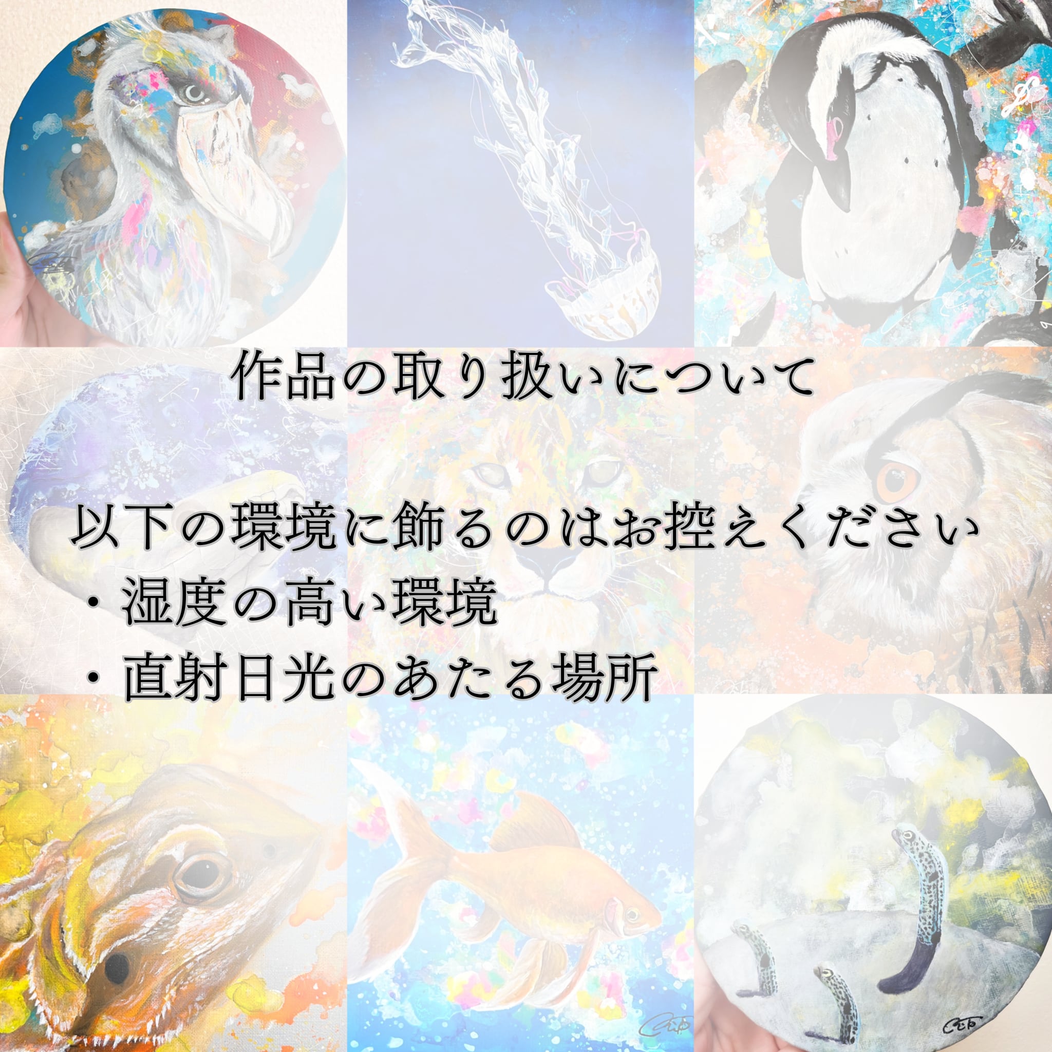 キャンバスは水分・湿気に弱く、梅雨の時期等は作品がたるむ可能性があります