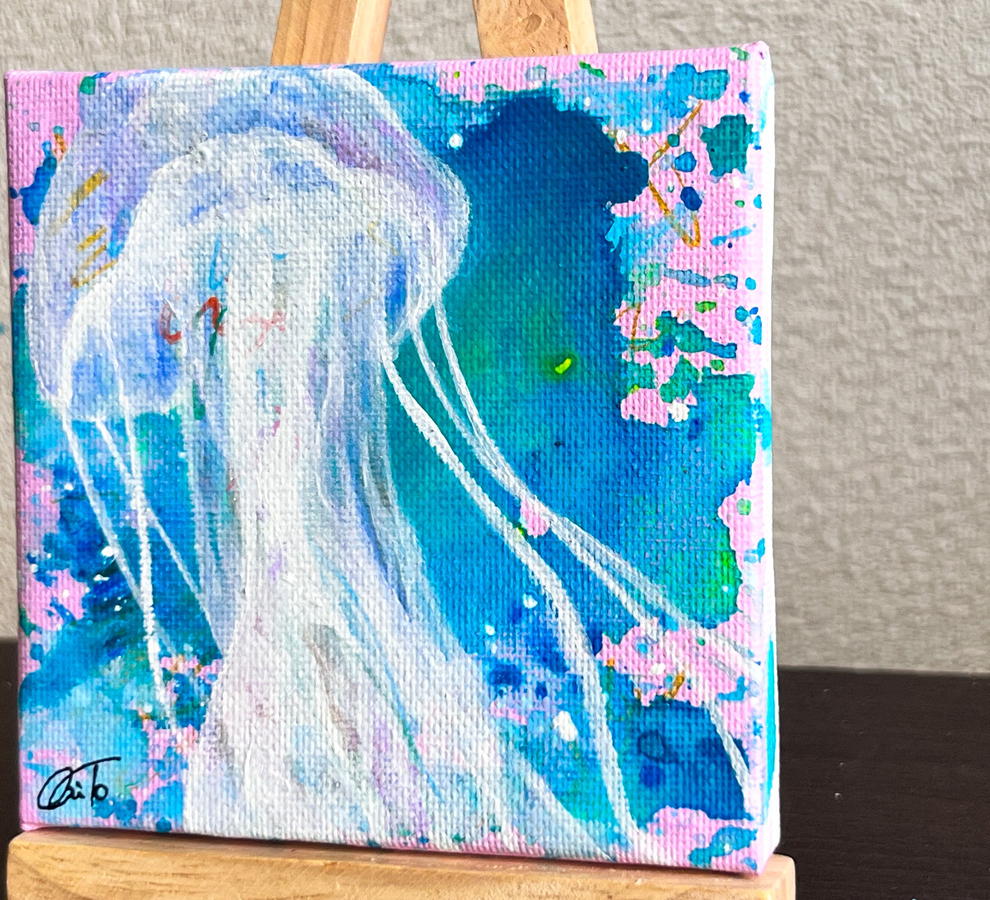 小さい作品でありながら、複数回の重ね塗りにより作品に深みを出し、鮮やかで面白い作品になっています